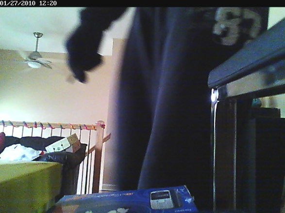 The “weapon” turned out to be a screw driver. He unplugged the camera and saw the police coming through a bay window.