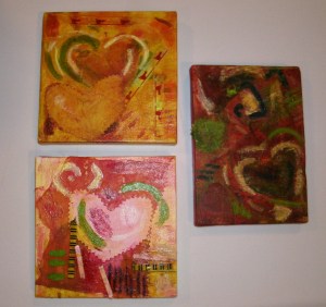Recently, his mom who is also an artist, had an art exhibit entitled 100 Hearts in his honor. I have three.