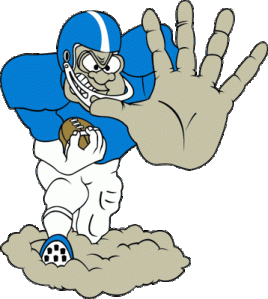 Some of these boys, like mine, are new to play and as expert as they may be when they watch the NFL, I suspect actually playing the game, is a tad bit different. You have to execute the rules you know so well by heart from watching. In this recent game, one newbie player from the other team had a tendency to put his hands up in the air, making it appear as though he was going to hit an opposing player, by way of fist.